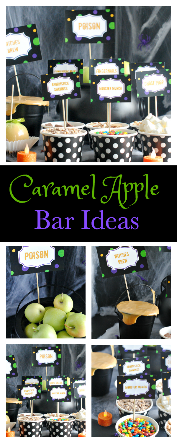 We used it as part of our Witch’s Night Out Party and it was a perfect addition. It will work great for any event you are hosting and it’s easy to put together. And something that your guest will really love. Here are our tips on how to put together a fun caramel apple bar.