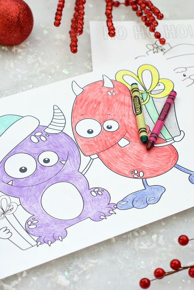 Grab 5 free printable Christmas coloring pages-monsters, gnomes, gingerbread, Santa and reindeers! All the kids need to do then is color. And maybe you can join them? It’s fun! These will work great at a party or when you need to keep the kids busy while you wrap.